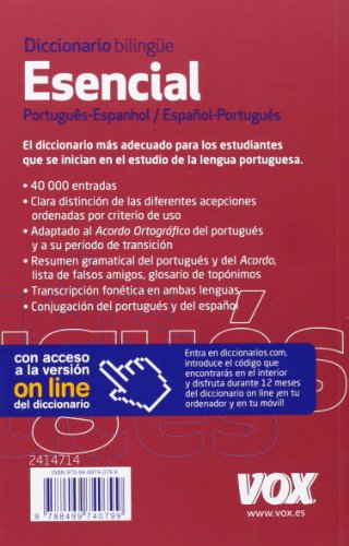 · 40 000 entradas · Clara distinción de las diferentes acepciones ordenadas por criterio de uso · Adaptado al Acordo Ortográfico del portugués y a su periodo de transición · Resumen gramatical del portugués y del Acordo, lista de falsos amigos, glosario de topónimos · Transcripción fonética en ambas lenguas · Conjugación del portugués y del español ¡CON ACCESO GRATUITO A LA VERSIÓN ONLINE DEL DICCIONARIO!