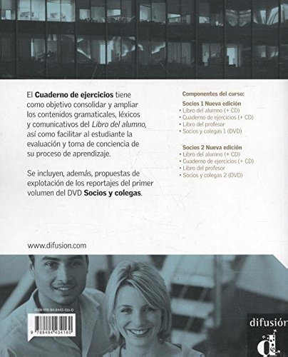 El Cuaderno de ejercicios de Socios 1 tiene como objetivo consolidar y ampliar los contenidos gramaticales, léxicos y comunicativos del Libro del alumno, así como facilitar al estudiante la evaluación y toma de conciencia de su proceso de aprendizaje. Se incluyen, además, propuestas de explotación de los reportajes del primer volumen del DVD Socios y colegas.
