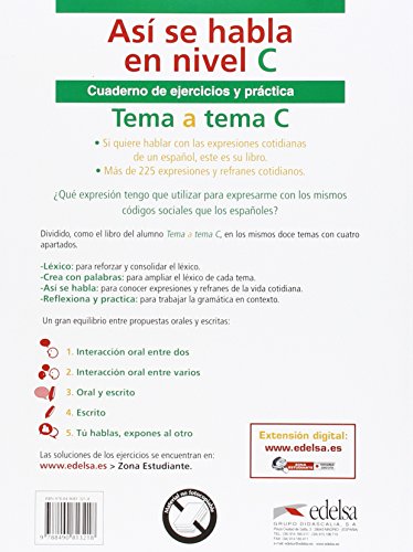 Así se habla en nivel C es el libro perfecto para hablar con las expresiones cotidianas de un español. Contienen más de 225 expresiones y refranes cotidianos. Dividido en 12 temas con 4 apartados.