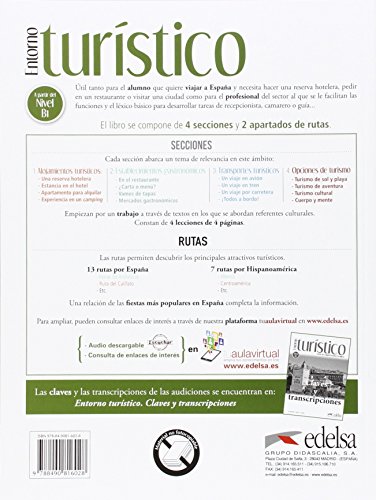 Útil tanto para el alumno que quiere viajar a España y necesita hacer una reserva hotelera, pedir en un restaurante o visitar una ciudad como para el profesional del sector al que se le facilitan las funciones y el léxico básico para desarrollar tareas de recepcionista, camarero o guía… El libro se compone de 4 secciones y 2 apartados de rutas.