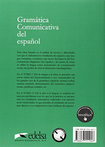 Este tomo 1 ” De la lengua a la idea ” presenta una nueva visión del funcionamiento y uso comunicativo de los grandes ejes de la gramática española: sistema verbal, sistema nominal, determinantes del sustantivo, preposiciones, perífrasis verbales, etc.