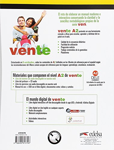Dispone de una ” plataforma virtual ” donde tus estudiantes pueden trabajar de manera autónoma o llevar el seguimiento de su trabajo a través de la creación de grupos. Tus alumnos podrán trabajar con el libro digital de Vente A2 en cualquier otro dispositivo (PC, Mac, tablets Android, iPad, Smartphone).
