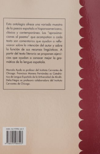 Temas de español: lecturas poéticas acompañadas para la enseñanza de español. Estructura de libro: Se desarrolla en 11 capítulos en los cuales se estudia diferentes aspectos graaticales del español como por ejemplo el adjetivo, la preposición, los pronombres, etc. Incluye solucionario y un apartado de biografía de los 16 autores tratados en el libro.