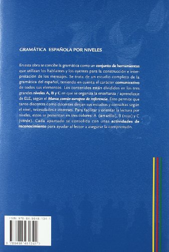 En esta obra se concibe la gramàtica como un conjunto de herramientas que utilizan los hablantes y los oyentes para la construcciôn e interpretacion de los mensajes. Se trata de un estudio completo de la gramàtica del espanol, teniendo en cuenta el caràcter comunicativo de todos sus elementos. Los contenidos estàn divididos en los tres grandes niveles A, B y C en que se organiza la ensenanza / aprendizaje de ELE, segûn el Marco comun europeo de referencia. Esto permite que tanto discentes como docentes dirijan sus estudios y consultas segûn el nive!, necesidades e intereses. Para facilitar y orientar la lectura por niveles, estos se presentan en tres colores: A (amarillo), B (rojo) y C (verde). Cada apartado se consolida con unas actividades de reconocimiento para ayudar al lector a asegurar la comprension.