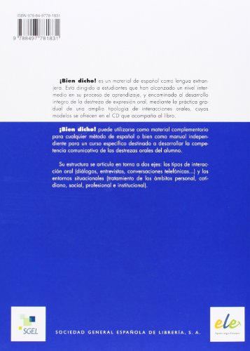 Dirigida a estudiantes de nivel intermedio. Encaminado al desarrollo íntegro de la destreza de expresión oral, mediante la práctica gradual de una amplia tipología de interacciones orales. Incluye cd audio.