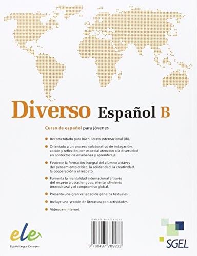 Dirigido a estudiantes de Bachillerato Internacional. Prepara a los alumnos para el examen del Programa del Diploma de Español B (se incluyen modelos de examen en nuestra Aula Electrónica). Promueve una mentalidad internacional. Orientado a un trabajo colaborativo de indagación, acción y reflexión, con especial atención a la diversidad. Dividido en conceptos que se interrelacionan con las habilidades y contenidos propuestos y que favorecen un pensamiento crítico y creativo. Libro digital disponible para el alumno con actividades interactivas y de audio. Para el profesor se incluye la guía didáctica, las fichas de trabajo para los vídeos, modelos de examen, explicaciones en PowerPoint y material extra. Manual dividido en 9 unidades en las que se trabajan todas las destrezas integradas. Al final de cada unidad se incluye una página de Acción-reflexión donde se propone una actividad, individual o de grupo y se pide al alumno que reflexione sobre sus actitudes y valores. El libro contiene un apartado de Literatura que trabaja con actividades variadas una selección de 9 fragmentos de obras de autores españoles y latinoamericanos. Al final del libro hay un apéndice gramatical y léxico. El libro contiene además el cuaderno de ejercicios con actividades para trabajar los contenidos del libro del alumno y una sección de autoevaluación en cada unidad. Las transcripciones de todos los audios que se incluyen en el CD que acompaña a este manual aparecen al final de la obra. Hay vídeos del curso en nuestro canal YouTube. Libro digital disponible. Una unidad de muestra descargable en nuestra web: www.sgel.es/ele