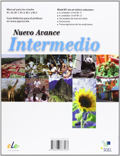 Cuaderno de ejercicios para reforzar los contenidos de Nuevo Avance intermedio, libro del alumno. Dirigido a estudiantes de español para extranjeros de nivel B1. Adaptado a las directrices del Plan Curricular del Instituto Cervantes. Cubre completamente el nivel B1 en un solo volumen. Consta de 12 unidades centradas tanto en contenidos gramaticales como en el desarrollo de las destrezas. Va acompañado de un CD audio necesario para la realización de las actividades orales. Al final del cuaderno se incluyen las soluciones de los ejercicios y la transcripción de las audiciones. Nuevo Avance consta de 6 niveles. Además ofrece en un solo volumen el Nivel Básico (A1 + A2); Nivel Intermedio (B1 + B2) y Nivel Superior (B2.1 + B2.2)