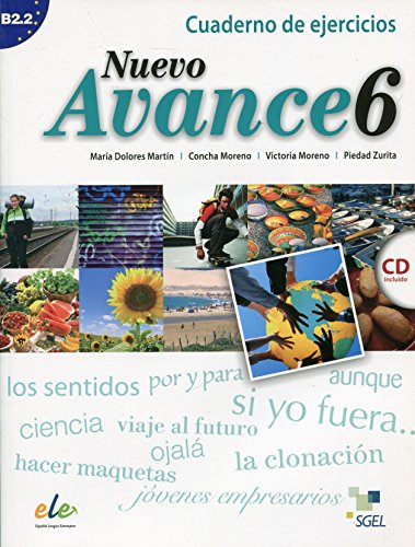 Cuaderno de ejercicios destinado a estudiantes jóvenes y adultos. Nivel B2.2 del MCER. Adaptado a las directrices del Plan Curricular del Instituto Cervantes.Cubre el nivel B2.2 del MCER. Material complementario para reforzar los contenidos de Nuevo Avance 6 libro del alumno. Consta de 6 unidades centradas tanto en contenidos gramaticales como en el desarrollo de las destrezas. Va acompañado de un CD audio necesario para la realización de las actividades orales. Al final del libro se incluyen las soluciones de los ejercicios y la transcripción de las audiciones.