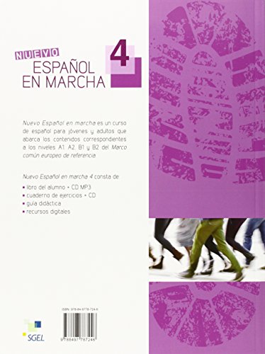 Método de español destinado a estudiantes jóvenes y adultos. Nivel B2 del MCER.Versión actualizada de Español en marcha, con nueva maqueta, nuevas ilustraciones y nuevas fotografías. Adaptado a las directrices del Plan Curricular del Instituto Cervantes. Sigue un enfoque comunicativo controlado con una progresión de contenidos ajustada al nivel de los alumnos. Desarrollo equilibrado de competencias lingüísticas y comunicativas. Al final de este nivel los alumnos tendrán recurso para desenvolverse en situaciones cotidianas, relacionadas con necesidades inmediatas. El método Nuevo español en marcha consta de 4 niveles y cubre los niveles A1-B2. También ofrece en un solo volumen el nivel Básico (A1 + A2). Ofrece 12 unidades con ejercicios prácticos. Se han actualizado los contenidos y se ofrecen más ejercicios en todas las páginas. Al final del cuaderno hay un apéndice con los siguientes apartados: Transcripciones de todas las audiciones y Solucionario de los ejercicios. En el CD audio hay nuevas grabaciones y más presencia de voces latinoamericanas. Vídeo en nuestro canal de YouTube: un capítulo por unidad con escenas cotidianas y numerosas referencias culturales. Unidad de muestra en www.sgel.es/ele. Vídeos que acompañan al curso en nuestro canal YouTube: SGEL ELE.
