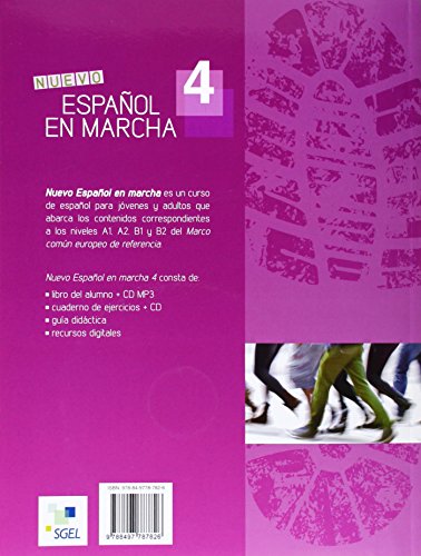 Método de español destinado a estudiantes jóvenes y adultos. Nivel B2 del MCER.Versión actualizada de Español en marcha, con nueva maqueta, nuevas ilustraciones y nuevas fotografías. Adaptado a las directrices del Plan Curricular del Instituto Cervantes.Sigue un enfoque comunicativo controlado con una progresión de contenidos ajustada al nivel de los alumnos. Desarrollo equilibrado de competencias lingüísticas y comunicativas. Al final de este nivel los alumnos tendrán recursos para desenvolverse en situaciones cotidianas, relacionadas con necesidades inmediatas. El método Nuevo español en marcha consta de 4 niveles y cubre los niveles A1-B2. También ofrece en un solo volumen el nivel Básico (A1 + A2). Nuevo apartado de Comunicación y cultura en todas las unidades para trabajar las destrezas: hablar, escuchar, leer y escribir. Cada 2 unidades hay 2 páginas de autoevaluación. Se han actualizado los contenidos y se ofrecen más ejercicios en todas las páginas (dos páginas más por unidad). Se han incorporado ejercicios prácticos en el anexo de gramática. Al final del libro hay un apéndice con los siguientes apartados: Gramática, vocabulario y ejercicios prácticos, Tabla de verbos y Transcripciones de todas las audiciones. En el CD audio hay nuevas grabaciones. En la web: Unidad de muestra en www.sgel.es/ele. y vídeos que acompañan al curso en nuestro canal YouTube: SGEL ELE.